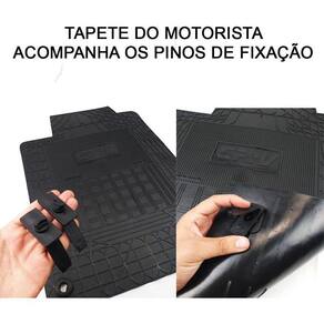 Especificação técnica: Fabricado de borracha injetado flexível Espessura de 3mm a 4mm e bordas de ate 5mm Textura antiderrapante Bordas retentoras de sujeira e mais grossa Material super resistente , não rasga e de grande durabilidade. Personalizado com o nome do carro Baixo odor Cor preta Jogo de 3 peças, sendo 2 peças dianteira e 1 uma única peça traseira Acompanha furação para travar os tapetes dianteiros esquerdo motorista e direito passageiro