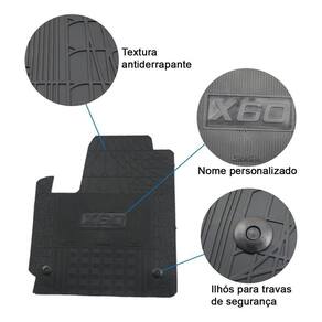 Especificação Técnica: Fabricado de Borracha injetado Flexível Espessura de 3mm a 4mm e bordas de ate 5mm Textura Antiderrapante Bordas Retentoras de Sujeira e mais grossa Material Super Resistente , não rasga e de grande durabilidade. Personalizado com o nome do carro Baixo odor Cor Preta Jogo de 3 peças, sendo 2 peças Dianteira e 1 uma única peça traseira com túnel Acompanha furação para travar os Tapetes dianteiros