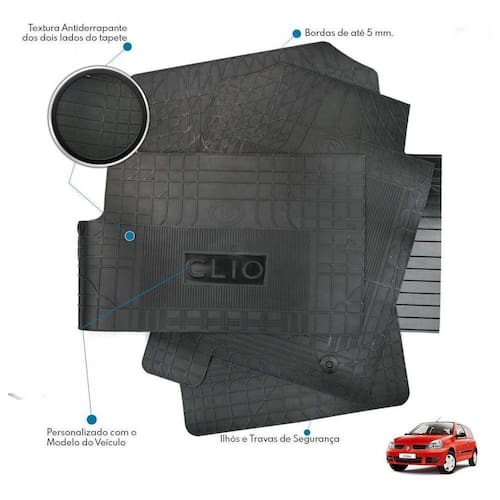 Jogo Tapete Interno Reforçado Renault Clio 2002 A 2012 Preto Especifico