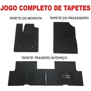 Kit jogo de 3 tapetes emborrachados super reforçados na cor preta. Produzido por empresa nacional com mais de 26 anos de experiência em projeto, fabricação e comercialização de de tapates não possuem odor, são antialérgicos, super resistentes e não deformam após a lavagem. Com uma técnica exclusiva no molde e corte, os tapetes são feitos sob medida para o veículo, garantindo assim maior proteção do assoalho e sem esquecer da estética.