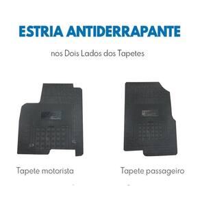 Especificação técnica: Fabricado de borracha injetado flexível Espessura de 3mm a 4mm e bordas de ate 5mm Textura antiderrapante Bordas retentoras de sujeira e mais grossa Material super resistente , não rasga e de grande durabilidade. Personalizado com o nome do carro Baixo odor Cor preta Jogo de 3 peças, sendo 2 peças dianteira e 1 uma única peça traseira Acompanha furação para travar o tapete dianteiro esquerdo motorista