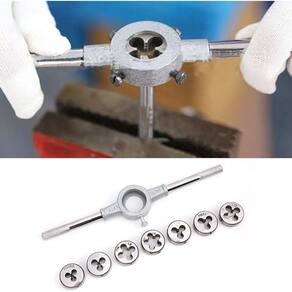 Adquira o Jogo Tarraxas e Cossinete 8 Peças, agora ainda mais completo com a inclusão da Chave de Encaixe para Cossinete. Este conjunto é ideal para abrir roscas, corrigir e reavivar roscas espanadas e defeituosas em parafusos, oferecendo uma solução completa para suas necessidades de rosqueamento.