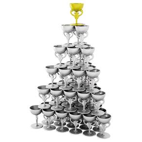 O vencedor será aquele que conseguir retirar mais troféus sem derrubar o troféu dourado.