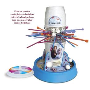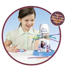 Coloque as bolinhas de neve dentro da torre, gire a roleta e vá puxando as varetas.