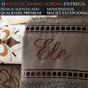 Quantas peças estão incluídas no jogo O jogo Aurora vem com toalhas de banho e rosto, perfeitas para o dia a dia, totalizando um conjunto completo.