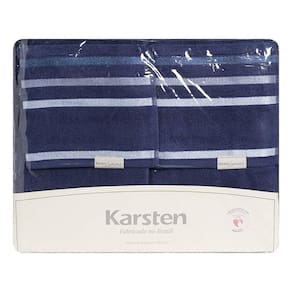 Jogo De Toalhas De Banho 5 Peças Karsten Lumina 500 G/M Azul Marinho Jogo de Banho Karsten Lumina, ótima opção para deixar seu banheiro mais bonito e elegante. Gramatura de 500 g/m, 98% Algodão de fibra longa, fio penteado Max qualidade superior, + macio + volume , antipilling, toque ultra macio, super absorção. Composto por:Jogo de Banho Karsten 5 peças sendo:2 Toalhas de Banho 70 x 140cm2 Toalhas de Rosto 48 x 80cm1 Toalha para pés 45 x 70cm Especificações:- Marca: Karsten- Modelo: Lumina- Composição: 98% Algodão 2% POliéster- Gramatura: 500 g/m- Tecnologia: SoftMax A Gramatura significa que quanto maior é o peso da toalha, maior é a quantidade de felpa. Quanto mais felpa, melhor será o toque e absorção. Toalhas com gramatura acima de 400 g/m são excelentes. Vantagens do Produto:- Tecnologia Exclusiva Karsten associada já a conhecida tecnologia SoftMax;- Mais felpudo;- Maciez incomparável;- Volume Inigualável;- Seca logo no primeiro uso;- Excelente absorção;- Antipilling. Tecnologia Softmax:Tecnologia italiana que consiste em adicionar ar entre as fibras do algodão, proporcionando melhor absorção, mais volume e conforto. Esse processo evita o ressecamento das fibras.
