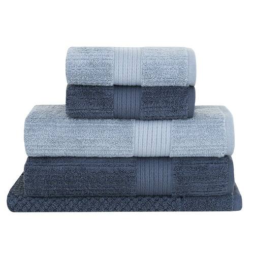 Conteúdo da embalagem: 2 toalhas de banho (70 x 140 cm); 2 toalhas de rosto (48 x 85 cm); 1 toalha de piso (48 x 80 cm)