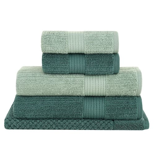 Conteúdo da embalagem: 2 toalhas de banho (70 x 140 cm); 2 toalhas de rosto (48 x 85 cm); 1 toalha de piso (48 x 80 cm)