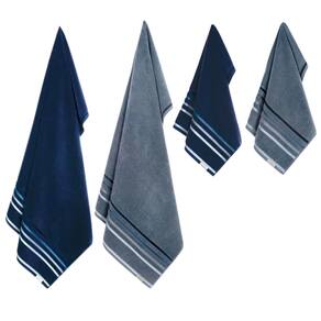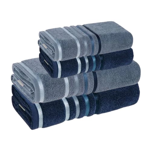 O que vem na embalagem: 01 Toalha de Rosto, tamanho 48cm x 80cm Cor: Azul Naval 01 Toalha de Rosto, tamanho 48cm x 80cm Cor: Azul Sereno 01 Toalha de Banho, tamanho 140cm x 70cm Cor: Azul Naval 01 Toalha de Banho, tamanho 140cm x 70cm Cor: Azul Sereno Gramatura 500g/m²