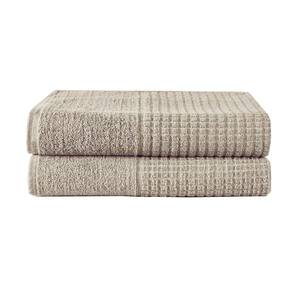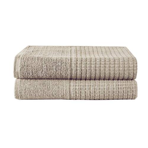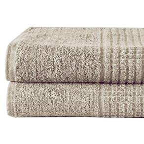 Jogo toalhas de banho bege paris 2 peças As toalhas de banho paris são produzidas em corpo desenhado em alto e baixo relevo quadriculado em cores neutras e uma barra lisa decorativa.