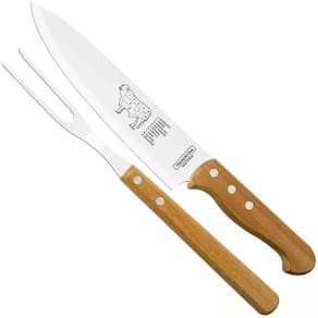 Jogo Tramontina Garfo Trinchante e Faca 8'' Churrasco Inox Cabo Madeira Natural 2 Peças.