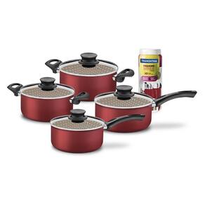 Muito importante: -- conferir produtos no ato do recebimento. Não aceitar produtos com embalagem violada amassado, rasgado, aberto, quebrado, etc , a recusa deve ser feita no ato. Componentes do kit: - 1 caçarola 18 cm 2,1 l paris - 1 caçarola 20 cm 2,9 l paris - 1 panela 18 cm 2,1 l paris - 1 panela 20 cm 2,9 l paris - 1 faqueiro inox 30pc ipanema vermelho - tramontina Jogo de panelas paris 4 peças alumínio antiaderente vermelho patv - tramontina: - corpo de alumínio com espessura que proporciona cozimento rápido e uniforme. - revestimento interno e externo de antiaderente starflon max que não gruda, é fácil de limpar, mais durável e não é prejudicial à saúde, pois é livre de pfoa. - tampas de vidro temperado, com saída de vapor e bordas de aço inox. - cabos, alças de baquelite antitérmico e pegadores de nylon que oferecem segurança durante o manuseio. - podem ir à máquina de lavar louças facilitando seu dia a dia. Para preparar suas refeições do dia a dia, é indispensável que você conte com um item que lhe garanta praticidade e versatilidade, como a panela tramontina paris em alumínio com revestimento interno e externo em antiaderente starflon max vermelho. Produzida em alumínio com revestimento interno e externo em antiaderente starflon max, ela garante o cozimento rápido e uniforme dos alimentos, evita que eles grudem em sua superfície e proporciona uma limpeza muito mais fácil. Ela possui tampa de vidro temperado com saída de vapor e borda de aço inox, que facilita a visualização dos alimentos e facilita seu preparo. Seu cabo ou alças são em baquelite antitérmico e o pegador da sua tampa é em nylon, dois materiais antitérmicos que proporcionam um manuseio muito mais seguro e confortável, pois não esquentam. Uma panela que pode ser levada à máquina de lavar louças e que vai otimizar sua rotina na cozinha : 90 dias para vícios ou defeitos de fabricação. Mais informações: - tipo: conjunto de panelas - cor: vermelho - linha: paris - revestimento: antiaderente starflon max - fogão: gás, elétrico, vitrocerâmico - resistência elétrica - máquina de lavar: sim Faqueiro ipanema 30pç vermelho tramontina 23398/788/: Descrição ficha técnica: Modelo ipanema 30 peças. Cód. 23398/788 cor vermelho Uso seguro e adequado: - antes da primeira utilização, lave bem as peças e seque-as. - produtos cortantes e perfurantes, tenha cuidado e mantenha sempre fora de alcance das crianças. - para maior durabilidade dos produtos, recomenda-se secar bem antes de guardar, mesmo após lavagem em máquinas. - para descarte dos produtos e embalagem, siga as orientações de reciclagem vigentes. Conteúdo: 6 facas lâmina 11,2cm - medida 21cm 6 garfos de mesa. - medida 19cm 6 colheres de mesa. - medida 19cm 6 garfos para sobremesa. - medida 14cm 6 colheres para chá. - medida 14cm - lâmina em aço inox, maior resistência a desgaste por fricção, raspagem. - fácil manuseio e limpeza sempre cuidando com navalha e pontas . - 30 pç por embalagem. Peso bruto: 4,60 kg Medida embalagem: 31cm a x 46 cm l x 30 cm p.