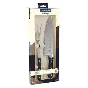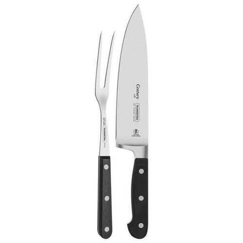 Praticidade, qualidade e , você encontra no Jogo Trinchante Tramontina Century com lâminas em aço inox e cabos de policarbonato com fibra de vidro 2 peças, da linha Century. Ele vem com faca de lâmina em aço inox forjada de altíssima qualidade que, aliada ao eficiente com tratamento térmico diferenciado, composto por têmpera, sub- e revenimento, além de dureza de 55 e 58 HR e cabo de policarbonato com fibra de vidro e garfo trinchante com lâmina de aço inox e cabo de policarbonato.