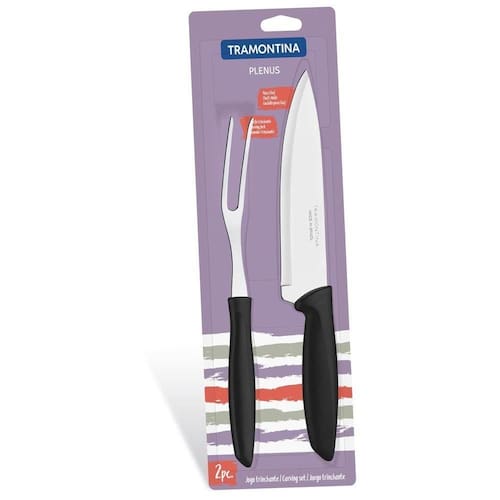 Peças práticas e essenciais fazem a diferença na nossa cozinha. Com o Jogo Trinchante Tramontina Plenus com Lâmina em Aço Inox e Cabo de Polipropileno Preto 2 Peças da Linha Plenus você vai ter charme e versatilidade nas atividades diárias. As duas peças se adequam a diferentes usos, podendo ser usadas desde o preparo dos alimentos ao serviço de mesa. As lâminas de aço inox e cabos de polipropileno são resistentes e confortáveis durante o manuseio. Fáceis de limpar podem ser levadas à máquina de lavar louças.