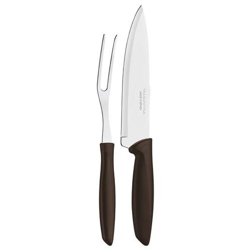 Jogo Trinchante Tramontina Plenus Inox e Cabos de Polipropileno Marrom 2 Peças Com o Jogo Trinchante Tramontina Plenus com Lâminas em Aço Inox e Cabos de Polipropileno Marrom 2 Peças, você terá mais praticidade e facilidade para servir aquela deliciosa carne assada. As peças combinam com qualquer ambiente e ainda dão um toque especial, pois possuem cabos de polipropileno na cor marrom. As peças são leves e de fácil manuseio, têm lâminas produzidas em aço inox submetidas a tratamento térmico que oferecem maior durabilidade e resistência. Fáceis de limpar, podem ir à máquina de lavar louças. A escolha perfeita para completar deixar seus momentos completos Como usar o produto Antes da primeira utilização, lave bem a peça e seque-a. Produto cortante e perfurante: tenha cuidado ao manusear e mantenha fora do alcance das crianças. Para maior durabilidade do produto recomenda-se secar bem antes de guardar, mesmo após lavagem em máquina. Para descarte do produto e embalagem siga as orientações de reciclagem vigentes. As lâminas de aço inox tem maior durabilidade do fio devido ao tratamento térmico. Os cabos de polipropileno possuem maior resistência e durabilidade. Podem ir à máquina de lavar louças facilitando seu dia a dia. Especificação Técnica: EAN13: 7891112275348 DUN14: 17891112275345 NCM: 8215.20.00 Peso Líquido: 0,1200 kg. Peso Bruto: 0,1550 kg. Metragem: 0,000942 m³. Cor 1: 2F241D Hexa Ean: 7891112275348