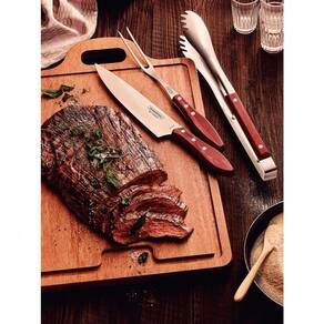 - Faca: Lâmina com Maior durabilidade do fio Devido ao tratamento térmico.- Garfo trinchante: a espessura do aço e a estampagem da lâmina garantem maior resistência ao produto, evitando deformações.- pegador de Carne: Lâmina com Maior durabilidade.- Cabos de madeira com tratamento especial, oferecendo maior durabilidade às peças.- Resistentes a impactos e a altas temperaturas.- Podem ir à máquina de lavar louças.- Permanecem bonitos por muito mais tempo.USOSEGURO E ADEQUADOAntes do uso: Antes de utilizar o , remova as eventuais etiquetas e lave-o com água e de uso: Tenha cuidado ao manusear produtos cortantes e perfurantes e mantenha-os fora do alcance de crianças. Para garantir a durabilidade dos produtos, recomenda-se secá-los bem após a lavagem, mesmo sendo em máquina de lavar louças.- Foto meramente ilustrativa.- Embalagem litografada. Ean: 7891112174986