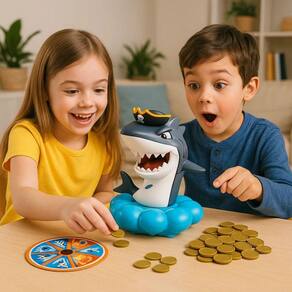Aventura e emoção a cada jogada: recupere moedas de ouro do tubarão, mas cuidado com o ataque surpresa Roleta divertida: determine quantas moedas você deve pegar por rodada. Ataque do tubarão: se for surpreendido, devolva metade das moedas Estimula o raciocínio e a concentração das crianças. Perfeito para brincar em família ou entre amigos.