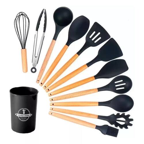 Jogo Utensílios De Cozinha 12 Peças Silicone Colher Concha