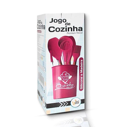 Com o Jogo De Cozinha 7 peças (balde incluso) você vai encontrar um jeito fácil, inovador e inteligente de preparar diversos pratos da culinária brasileira sem correr o risco de riscar suas panelas e frigideiras. O Jogo De Utensílios De Cozinha da 123útil é super resistente a altas temperaturas, com cabo de madeira proporcionando um visual elegante e equilibrado. Um kit perfeito para usar em todas as panelas de sua casa. Ficha Técnica Marca: 123Útil Produto: Kit De Cozinha Material: Madeira e silicone Cor: Rosa Conteúdo Da Embalagem 01 Pegador 26,5cm 01 Batedor de claras 26cm 01 Colher 31,5cm 01 Concha 31cm 01 Espátula 31cm 01 Pincel 27cm 01 Balde 16cm Ean: 7899872212146
