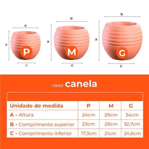 Características principais do produto: Modelo: Vaso Canela 24 Terracota Terrano Altura: 24 cm Comprimento superior: 23 cm Comprimento inferior: 17,3 cm