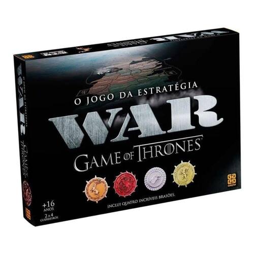 O clássico War agora junto ao sucesso de Game Of Thrones. Escolha a sua família e seja fiel a ela até o fim! Lannister, Stark, Targaryen ou Baratheon: quem chegará ao trono de ferro? É emoção garantida durante toda a partida! Prepare-se para esta incrível batalha, onde as melhores escolhas e estratégias te levarão a vitória! Incríveis brasões modelados das casas! Este eletrizante jogo que irá te desafiar do começo ao fim! Cada exército defende a honra de sua família numa luta incessante pelo poder de reinar nos 36 territórios. O jogo vem com uma regra básica para os guerreiros de Westeros batalharem ao estilo do War tradicional e uma regra avançada para jogadores que preferem batalhar pelo trono no estilo Game Of Thrones!