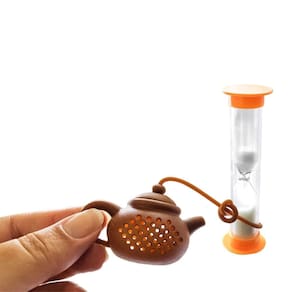 Imagine o charme de ter um infusor de chá que vem com um timer de areia? A linha Gourmet da Prana desenvolveu essa combinação para dar uma alternativa para quem aprecia um chá perfeito, com o tempo médio ideal de infusão (3 minutos).Timer estilo ampulheta com marcação de tempo por areia. Infusor em formato de bule, um charme!