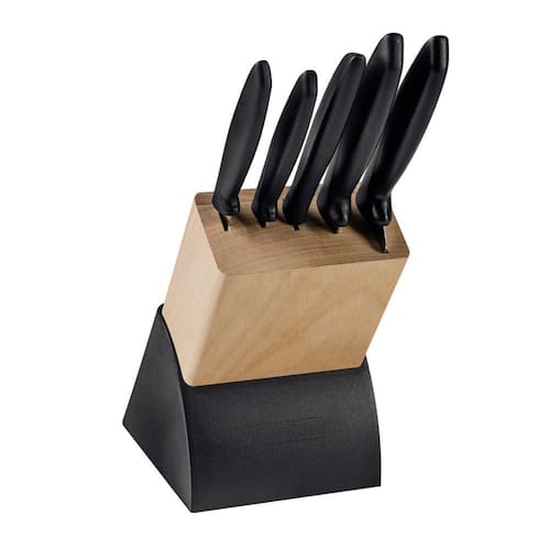 Jogo de 6 PÇ 5 pç e Suporte de Madeira Plenus Lâminas Inox Cabos Polipropileno - Tramontina 23498028