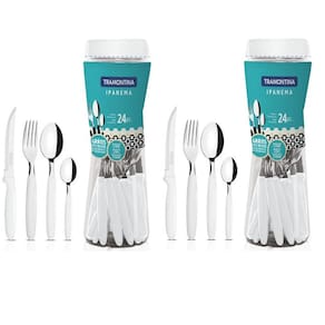 Jogos Talheres Faqueiro Tramontina Ipanema 48 Peças Branco - 23399/891 Descrição: Saia do clássico e inove. Trazendo estilo e alegria para sua cozinha, os talheres da linha Ipanema da Tramontina possuem cabos coloridos e super resistentes de polipropileno, e por serem produzidos em aço inox em espessuras que mantém formas inalteradas mesmo com o uso intenso, e por receberem tratamento térmico, suas lâminas são de grande durabilidade. Além disso, todas as peças podem ir à máquina de lavar louça. Lâminas em aço inox. Cabos de polipropileno. Pote plástico. Contém: 12 - Facas De Mesa/churrasco 5 12 - Garfos de mesa 12 - Colheres de mesa 12 - Colheres para chá Antes da primeira utilização, lave bem as peças e seque-as. Tenha cuidado ao manusear produtos cortantes e perfurantes e mantenha-os fora do alcance de crianças. Para maior durabilidade dos produtos, recomenda-se secar bem antes de guardar, mesmo após lavagem em máquina. Para descarte dos produtos e embalagens siga as orientações de reciclagem vigentes. EAN13: 7898673650119 DUN14: 17891112086385 NCM: 8215.20.00 Peso Líquido: 0,5350 kg. Peso Bruto: 0,6250 kg. Metragem: 0,003000 m Dimensões Embalagem Compr. X Larg. X Alt. : 100x 100x 300 mm. Dimensões Produto Compr. X Larg. X Alt. : 100x 100x 300 mm. Cor 1: FFFFFF Hexa Ean: 7898673650119