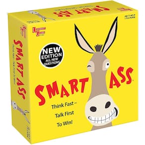 Quem é o Smart Ass entre seus amigos e família? Descubra com esse jogo de festa ultrajante e rápido. Cada pergunta tem oito pistas. O primeiro jogador a gritar a resposta correta ganha a rodada e dá um passo mais perto de ser o último Smart Ass. Nenhuma base de conhecimento específica é necessária, então até um Burro pode ganhar!