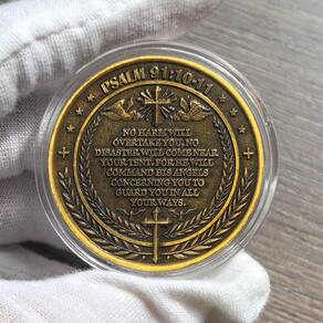 Lista de pacotes: Moeda de desafio, estojo de moedas transparente - Design inspirador: esta moeda de desafio lindamente trabalhada apresenta uma representação detalhada do Arcanjo Miguel em um lado, simbolizando proteção e força, e uma inscrição do Salmo 91:10-11 no verso, oferecendo palavras de fé e encorajamento - Artesanato de alta qualidade: Feita de liga de zinco durável, esta moeda apresenta detalhes complexos e cores vibrantes, garantindo que permaneça uma lembrança apreciada por muitos anos. A moeda vem envolta em uma capa protetora transparente para preservar sua condição - Presente significativo: perfeita para ocasiões religiosas, esta moeda de desafio é um presente ideal para amigos, familiares ou qualquer pessoa que precise de um lembrete de proteção e orientação divina. É adequado para aniversários, confirmações ou como um símbolo de agradecimento - Portátil e conveniente: Com seu tamanho compacto, esta moeda de desafio é fácil de carregar em um bolso, carteira ou bolsa, permitindo que você mantenha um símbolo de fé e proteção com você em todos os momentos - Item de colecionador: Se você é um colecionador de artefatos religiosos ou simplesmente deseja um lembrete tangível de fé, esta moeda de desafio do Arcanjo de São Miguel é uma adição valiosa a qualquer coleção, incorporando significado espiritual e beleza artística