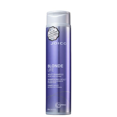 Shampoo matizador para cabelos loiros. Joico Blonde Life Violet Smart Release neutraliza os tons amarelados enquanto limpa suavemente os fios para garantir um loiro radiante com uma nuance fria e brilho intenso.