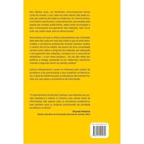 Nos últimos anos, um fenômeno comunicacional tomou conta do mundo: o uso cada vez mais intenso das redes sociais por políticos de todas as instâncias. Ao mesmo tempo, o jornalismo aprofundou crises estruturais, provocadas pela queda das receitas publicitárias, pelas novas tecnologias e pelo consequente enxugamento das redações. Que riscos tudo isso pode trazer para as democracias? Numa época em que os efeitos devastadores das chamadas fake news são cada vez mais discutidos e que se tenta desacreditar o jornalismo profissional, Ricardo Gandour analisa o cenário de forma inédita. Na esteira de uma consolidada carreira como editor e dirigente de redações, ele radiografa o enxugamento das redações, compara com o crescimento vertiginoso – e por vezes perigoso – do uso das redes por políticos e indaga, baseando-se em Habermas: estaremos vivendo a segunda morte da opinião pública? Leitura indispensável a quem se interessa pelo campo do jornalismo e da comunicação e seus impactos na democracia, e obra de referência para os estudiosos das transformações por que passa o ecossistema da informação. Prefácio de Eugenio Bucci.