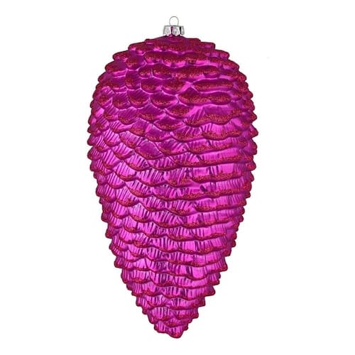 Adorno navideño de piña mate con brillo fucsia de 25 cm (10 pulgadas) de Vickerman. Añade un toque de brillo a tus decoraciones navideñas con este hermoso adorno de piña. Está fabricado en plástico irrompible, tiene un acabado mate suave con detalles de brillo y cuenta con un casquillo perforado asegurado con alambre floral verde. Incluye 2 piezas por paquete. Características: - Fabricado en plástico irrompible - Acabado mate con brillo - Casquillo perforado y asegurado con alambre - 2 adornos por paquete - Recomendado para uso interior Especificaciones: - Peso del producto: 0,38 kg