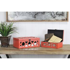 Cajas de madera marroquí Cheung's FP-4060-2OR con espejos en el frente y en la parte superior | Juego de 2 | Naranja - Un juego de cajas de almacenamiento temáticas marroquíes de dos piezas (grande y pequeña) - Cada pieza incluye espejos en el frente y en la parte superior, cubiertos con un diseño de madera marroquí naranja y un cierre metálico para mantenerlas firmemente cerradas - Medidas: Grande: Largo: 30,5 cm x Ancho: 20,3 cm x Alto: 12 cm; Pequeña: Largo: 24,8 cm x Ancho: 15,2 cm x Alto: 8,9 cm - En el interior de cada caja hay un forro negro que ofrece un acabado integral y que no muestra suciedad ni desgaste fácilmente - Este juego es una opción perfecta para regalo o para contener regalos en eventos especiales, ocasiones o festividades - Este artículo es completamente hecho a mano, por lo que pueden presentarse variaciones menores