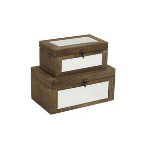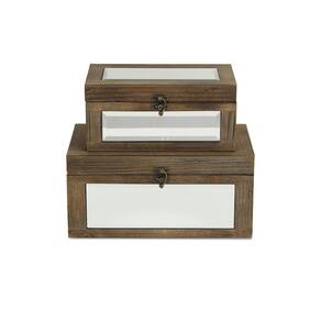 Juego de 2 cajas de almacenamiento en madera espejada marrón de Cheung, medidas 11.75" de largo x 7" de ancho x 5.5" de alto. - Diseño totalmente artesanal y hecho a mano - Completamente ensambladas y listas para usar, ¡simplemente sáquelas de la caja y exhiba! - Esta pieza está hecha de una combinación complementaria de madera y materiales espejados - Viene como un juego anidado de 2, grande y pequeño - Presenta una construcción natural de madera con espejo en la parte superior y frontal