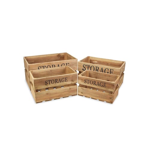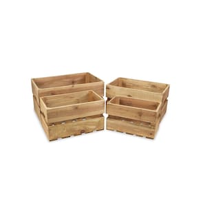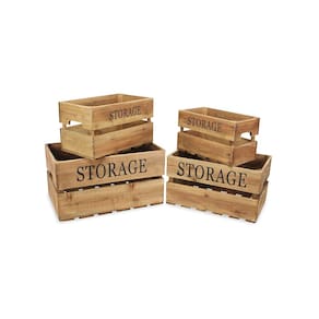 Juego Cheung's 4741-4 de 4 cajones de almacenaje de madera, color marrón. - Conjunto de 4 cajones de madera (extra grande, grande, mediano y pequeño) con diseño de listones. - Cada cajón cuenta con la etiqueta "ALMACENAJE" y asas laterales para transporte. - Perfectos para diversos ambientes en el hogar, oficina y más; los cajones ofrecen una función de almacenamiento práctica mientras agregan estilo y un elemento natural. - Medidas: Extra grande: Largo: 52.7 cm x Ancho: 33.7 cm x Alto: 28.6 cm; Grande: Largo: 46.4 cm x Ancho: 29.2 cm x Alto: 25.4 cm; Mediano: Largo: 41.3 cm x Ancho: 24.1 cm x Alto: 23.5 cm; Pequeño: Largo: 35.6 cm x Ancho: 20.3 cm x Alto: 21 cm. - Regalo ideal para amigos y familiares, con la combinación perfecta de estilo y funcionalidad. - Cada pieza es completamente hecha y elaborada a mano, por lo que puede presentar pequeñas variaciones.