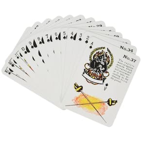 Baraja antigua de 52 cartas con miniaturas en las esquinas superiores izquierdas y dibujos descriptivos con significados en el resto de la carta. También es adecuada como baraja normal para jugar. - Dimensiones del paquete: 9,14 cm (L) x 6,35 cm (An) x 1,52 cm (Al) - Tipo de producto: Juego de mesa - Cantidad en paquete: 1 - Peso del paquete: 0,07 kg
