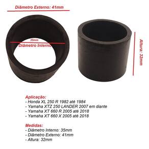 Junção Guarnição Ponteira Escapamento Xt 660 2005 até 2018 As guarnições de escapamento Valflex são fabricadas no material Silicone de alta qualidade. Aplicação: - Honda XL 250 R 1982 até 1984 - XTZ 250 LANDER 2007 em diante - XT 660 R 2005 até 2018 - XT 660 X 2005 até 2018 Medidas: - Diâmetro Interno: 35mm - Diâmetro Externo: 41mm - Altura: 32mm Conteúdo da embalagem: - 01 Junção Guarnição Ponteira Escapamento De Silicone Uma Peça Características e benefícios: - Marca: Valflex - Cor: Preto - Material: Silicone