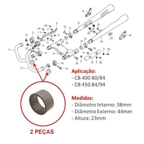 A Junção Guarnição Ponteira Escape Dianteira CB 400 CB 450 da marca Valflex é um componente essencial para motocicletas e quadriciclos que buscam otimizar o desempenho do sistema de escape. Com o número de peça 16523, este produto foi projetado para garantir uma conexão segura e eficiente, contribuindo para um funcionamento suave do motor.