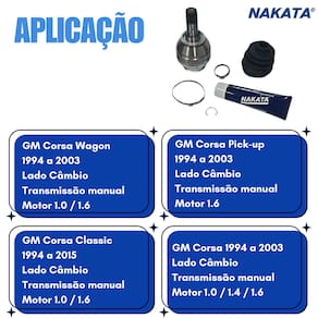 APLICAÇÃO: MONTADORA: CHEVROLET VEICULO: CORSA MODELO: TODOS OS MODELOS 1.0 / 1.4 / 1.6 ANO: 1994 A 2003