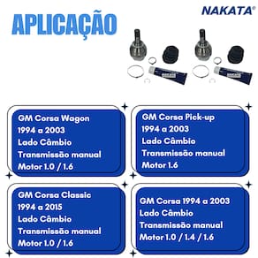 APLICAÇÃO: MONTADORA: CHEVROLET VEICULO: CORSA MODELO: TODOS OS MODELOS 1.0 / 1.4 / 1.6 ANO: 1994 A 2003