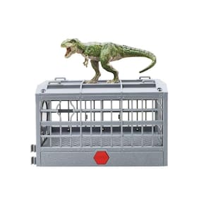 O dinossauro pode ser colocado dentro ou fora da gaiola, oferecendo flexibilidade na brincadeira.