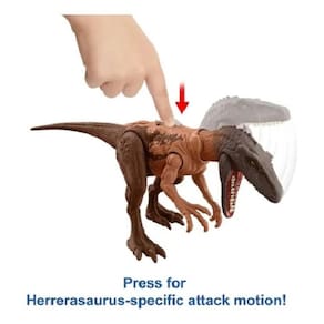 Conheça o mais novo Dinossauro Jurassic World Herrerasaurus Mattel! Com articulações por todo o corpo, esse dinossauro carnívoro é capaz de caçar em diversas posições diferentes, tudo para deixar a brincadeira ainda mais divertida! Além disso, seu mecanismo de ataque permite erguer suas membranas como uma enorme juba, tornando-o ainda mais ameaçador. E como se tudo isso não bastasse, as cores vislumbrantes e a textura realista fazem desse dinossauro um perfeito companheiro para incluir em suas aventuras pré-históricas!
