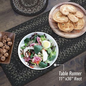 - CORREDOR TRANÇADO COM DESIGN MULTICOLORIDO: adicione variedade e interesse à sua mesa com este corredor trançado que tem um design multicolorido. Este tapete é preto azeviche, mas com toques sutis de marrom e cinza, dando-lhe uma aparência mesclada. Os fios são tingidos a uma temperatura mais alta para obter cores mais ricas e uniformes, para que você possa apreciar a nuance e a profundidade de cada tonalidade. Este tapete tem 11 x 36 polegadas, o que é perfeito para uma mesa padrão.