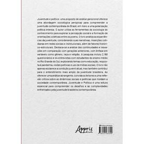 Juventude e política: uma proposta de análise geracional oferece uma abordagem sociológica perspicaz para compreender a juventude contemporânea do Brasil, em meio a uma polarização política intensa. O autor utiliza as ferramentas da sociologia do conhecimento para explorar a percepção social e a formação de orientações coletivas entre os jovens. O livro analisa as experiências da juventude, considerando suas narrativas, inserções cotidianas em redes sociais e institucionais, além de fatores histórico-estruturais. Destaca-se a análise das continuidades e inovações em comparação com gerações anteriores, com ênfase em variáveis como gênero, raça e religião. A pesquisa incluiu 2.169 questionários e 44 entrevistas com estudantes do ensino médio no Rio Grande do Sul, explorando temas como educação, resposta à pandemia, visões políticas e uso de mídias sociais. O livro não apenas esclarece a condição juvenil atual, mas também contribui para o entendimento mais amplo da juventude brasileira. Ao oferecer uma análise abrangente, convida os leitores a uma reflexão crítica sobre as dinâmicas sociais e políticas que moldam a sociedade contemporânea. Juventude e Política é uma leitura essencial para compreender os desafios e as complexidades enfrentados pela juventude brasileira contemporânea.