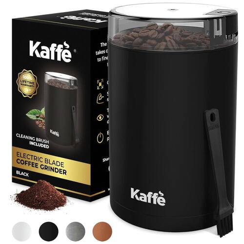 Moedor de café Kaffe para grãos, capacidade de 100g, lâminas em aço inoxidável, botão liga/desliga na tampa de segurança, tampa transparente para monitorar a moagem.