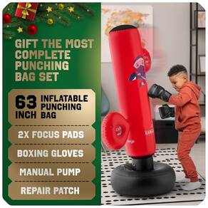 BRINQUEDOS NINJA PARA CRIANÇAS DE 3 A 12 ANOS! O conjunto também pode ser utilizado por adultos. Entre os benefícios para os pequenos estão o aumento da autoconfiança, o aprimoramento dos reflexos, momentos de diversão longe de gadgets e a prática segura das artes marciais. FEITO PARA DURAR! A bolsa é confeccionada em PVC de alta qualidade, com espessura de 0,35 mm, resistente a vazamentos. Todo o conjunto é atóxico e livre de BPA, garantindo a segurança das crianças. As luvas possuem espuma PU de alta densidade e costuras reforçadas para maior durabilidade. MONTAGEM RÁPIDA E FÁCIL! A instalação da bolsa é simples e rápida, levando de 3 a 5 minutos. A bomba manual é eficiente e mais rápida que as elétricas. A base pode ser preenchida com água ou areia para garantir máxima estabilidade durante o uso. Prepare-se para muita diversão e aprendizado com o kit KANGABILITY!
