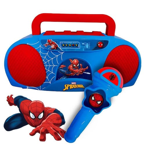 Homem-Aranha Acompanha Você: Com um design temático do Homem-Aranha, este karaokê é perfeito para os pequenos fãs do herói.
