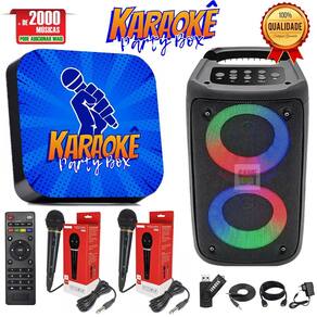 Karaoke Party Box Azul +2 Mic com Fio +de 2000 Músicas +Catalogo Impresso (Com Pontuação)