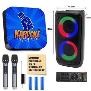 BENEFÍCIOS: - Música Ambiente Para sua festa não parar - Digite o Número Da Música e Cante Procure pela música desejada no Catálogo, digite no Karaokê, aperte OK no controle remoto e cante - Contagem Regressiva de 5 Segundos Personalizada Após selecionar a música - Lista De Espera Você pode adicionar até 5 músicas na lista de espera - Pontuação Após cantar receberá sua nota - Adicione Músicas Caso não tenha a música que deseja, você mesmo a poderá adicionar ÍTENS INCLUSOS: - 1 Karaokê Party Box - 1 Caixa de Som pequena 30cm altura + 15cm largura + 15cm espessura 200w potência, 20w subwoofer Com Bluetooth, função rádio, entrada usb, cartão sd e auxiliar p2 - 2 Microfones Sem Fio Com - 1 Controle Remoto - 1 Cabo HDMI - 1 Fonte Bivolt 110v/220v - 1 Cabo de áudio - 1 Pendrive - 1 Catálogo de Músicas Impresso DÚVIDAS FREQUENTES: Tem pontuação R: Sim, fictícia. É possível adicionar músicas R: Sim. Qual a voltagem R: Bivolt 110v/220v R: 3 meses. Precisa de Internet R: Não. Compatibilidade Funciona em Tv, monitor e projetor basta conectar na entrada hdmi OBS: Após a compra passaremos nosso contato e daremos todo suporte necessário Homologação Anatel: 112572013224 Marca: Não Informado